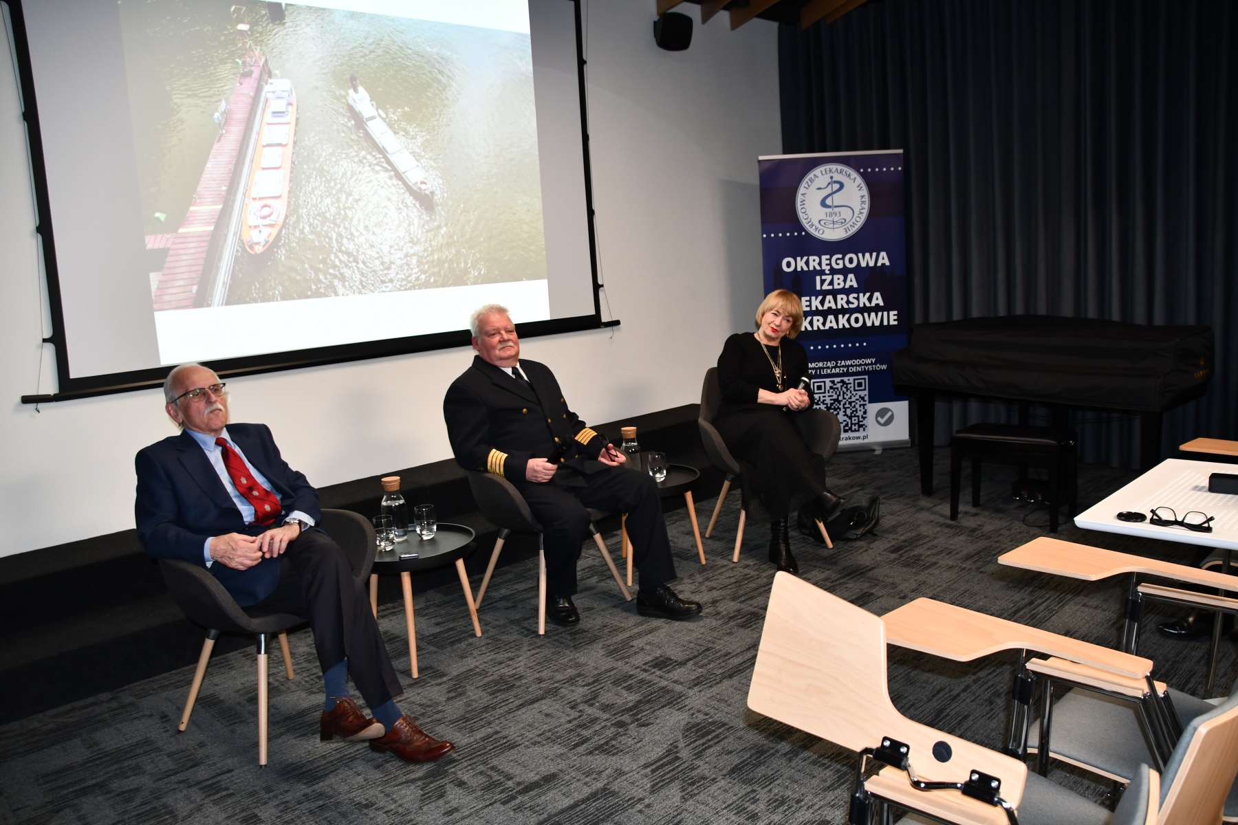 Temat spotkania okazał się wyjątkowo inspirujący. Rozmawialiśmy m.in. o tym, jak specyfika pracy na morzu wpływa na organizm, jakie wyzwania zdrowotne pojawiają się w sytuacjach ograniczonego dostępu do opieki medycznej oraz dlaczego kompetencje „miękkie” (spokój, komunikacja, decyzje pod presją) bywają równie ważne jak procedury. Prelekcja naturalnie otworzyła przestrzeń do wymiany myśli — pojawiły się pytania, przykłady z praktyki i żywa dyskusja, która pokazała, jak szerokie jest pole styku między oceanami a medycyną.