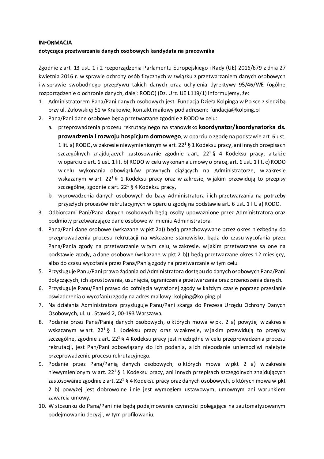 Poszukujemy pracowników na stanowiska: lekarz/lekarka, pielęgniarz/pielęgniarka oraz koordynator ds. prowadzenia i dalszego rozwoju hospicjum.