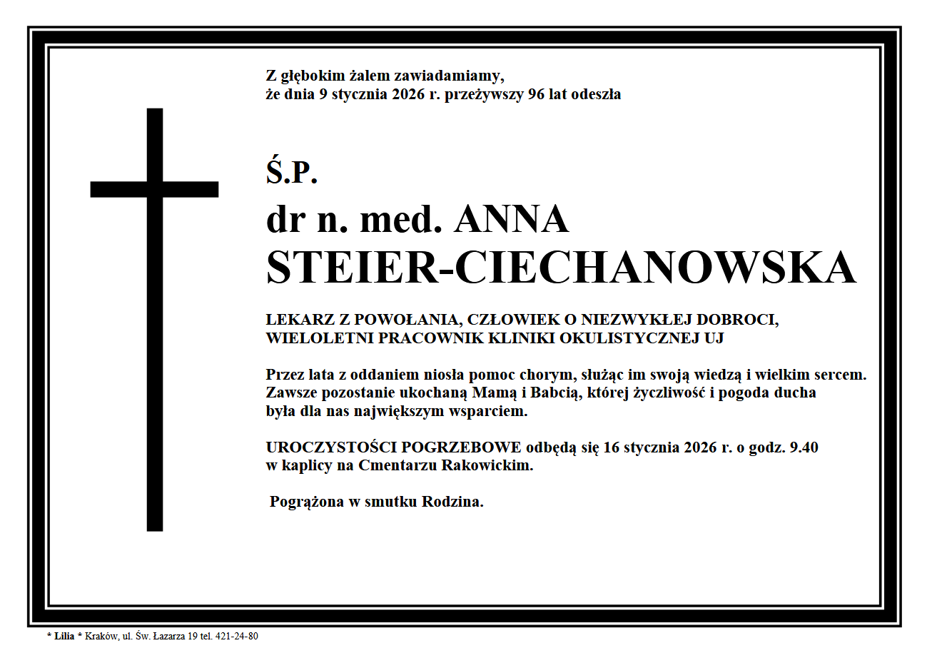 Zmarła dr n. med. Anna Steier Ciechanowska