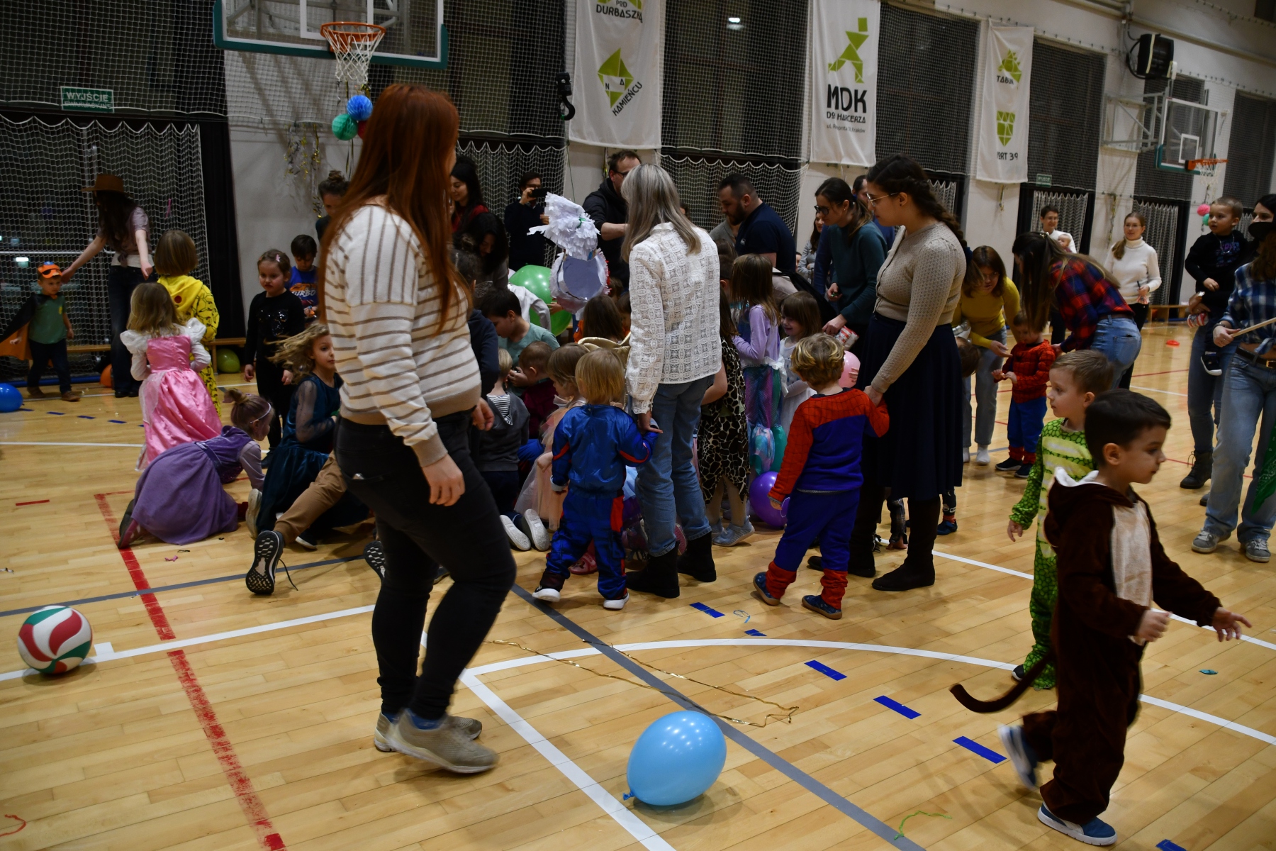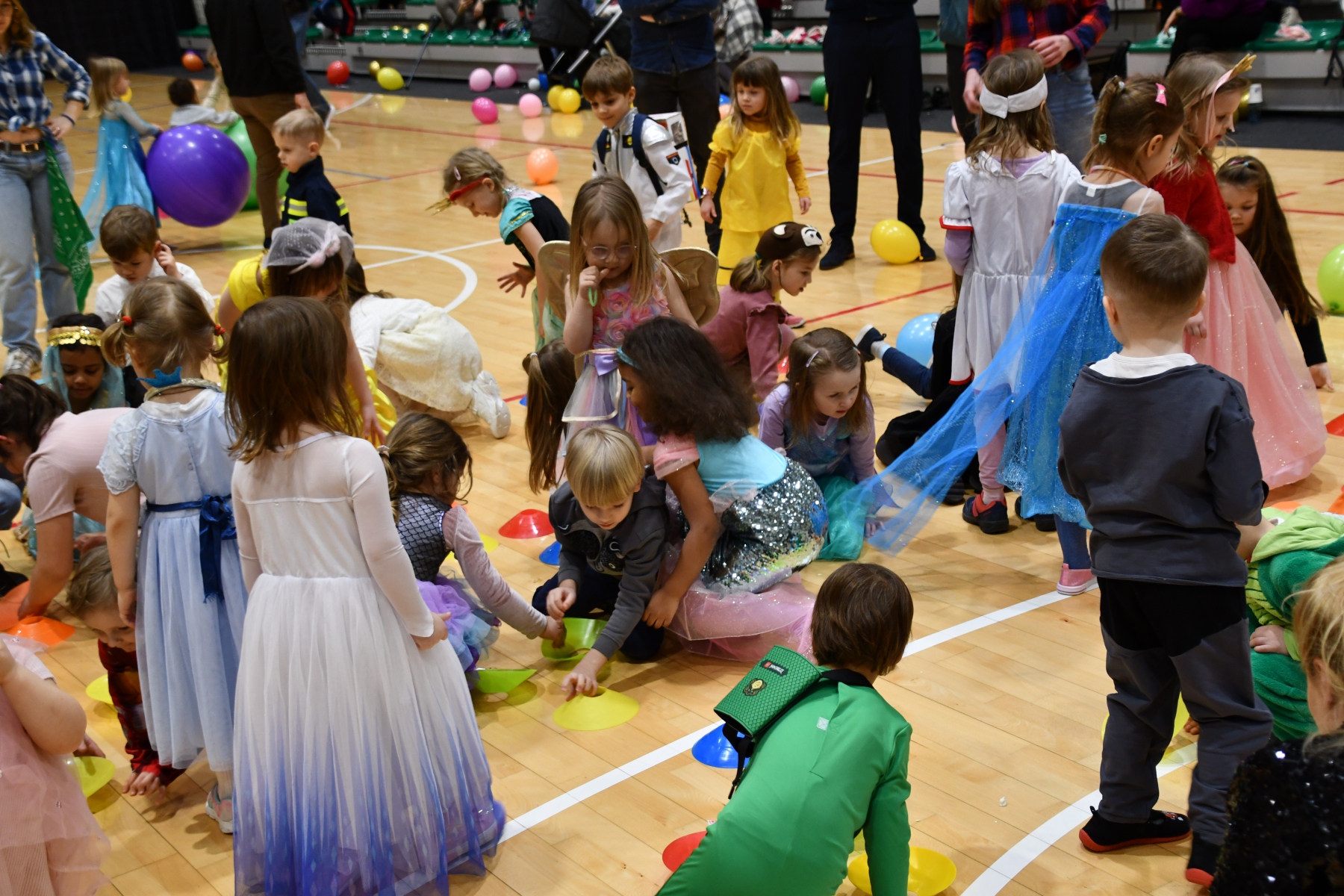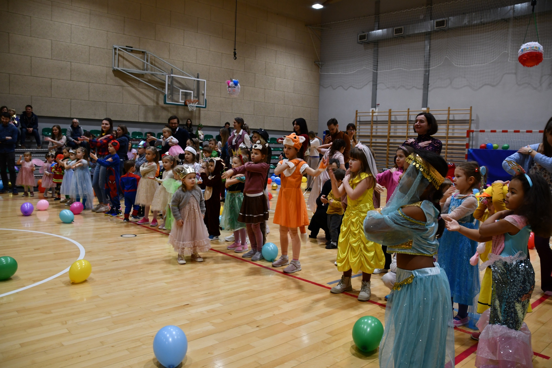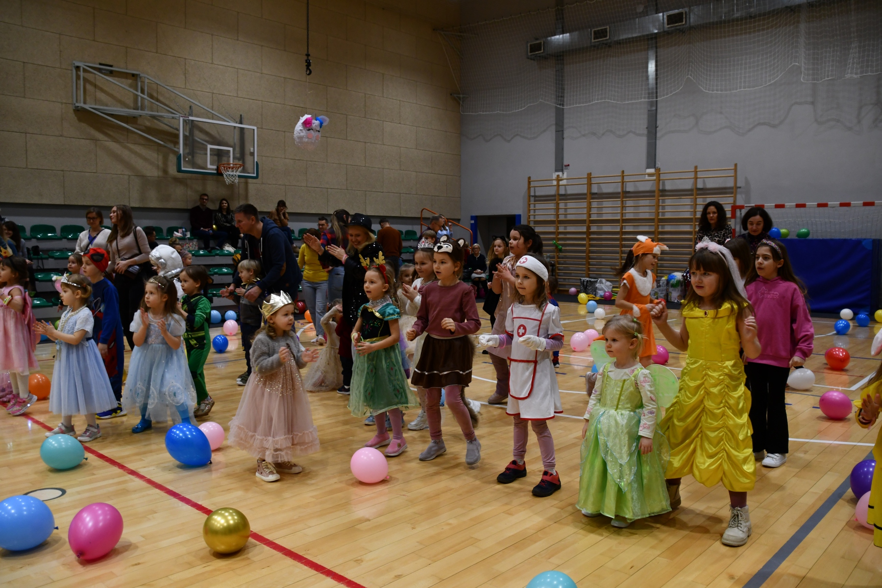 Sala wypełniła się bajkowymi postaciami – pojawiły się księżniczki, smoki, dinozaury, strażacy, policjanci, motylki, syrenki, kosmonauci i wiele innych fantastycznych przebrań
