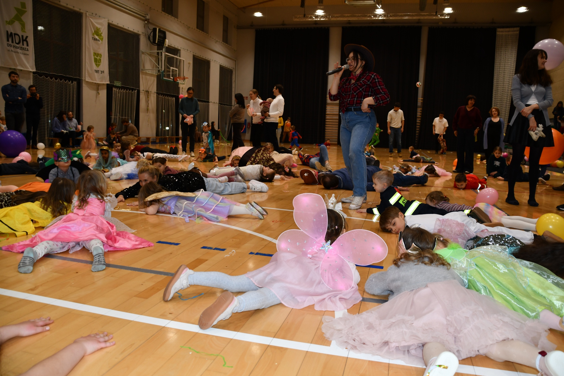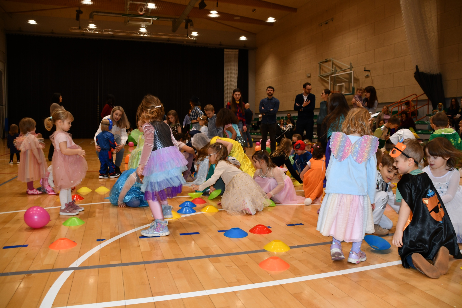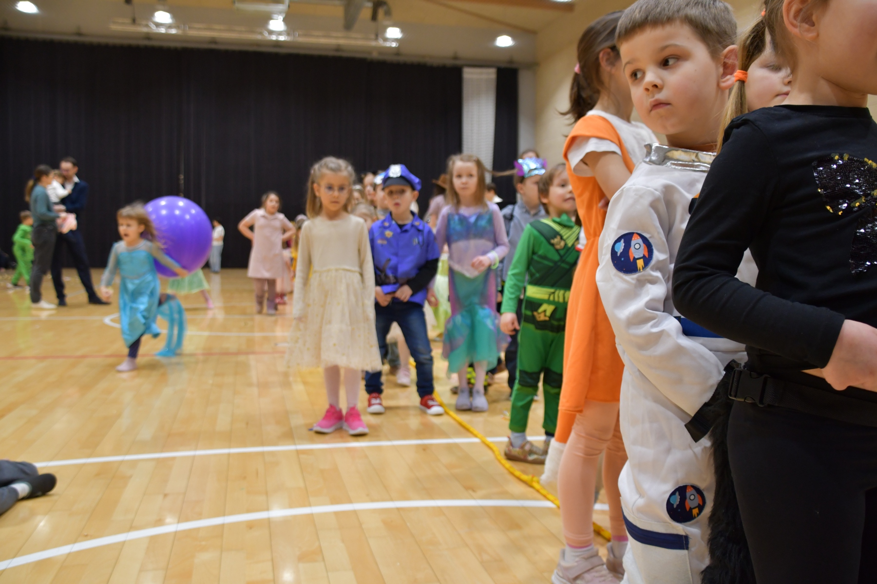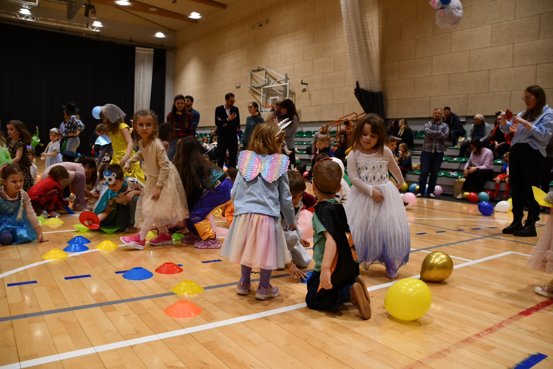 Sala wypełniła się bajkowymi postaciami – pojawiły się księżniczki, smoki, dinozaury, strażacy, policjanci, motylki, syrenki, kosmonauci i wiele innych fantastycznych przebrań