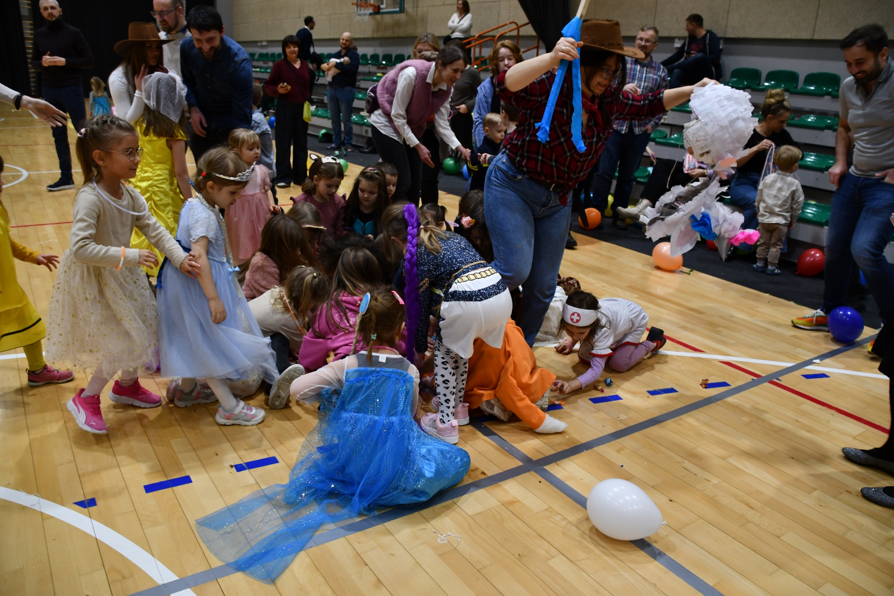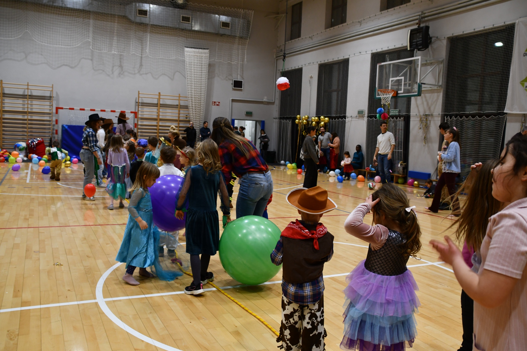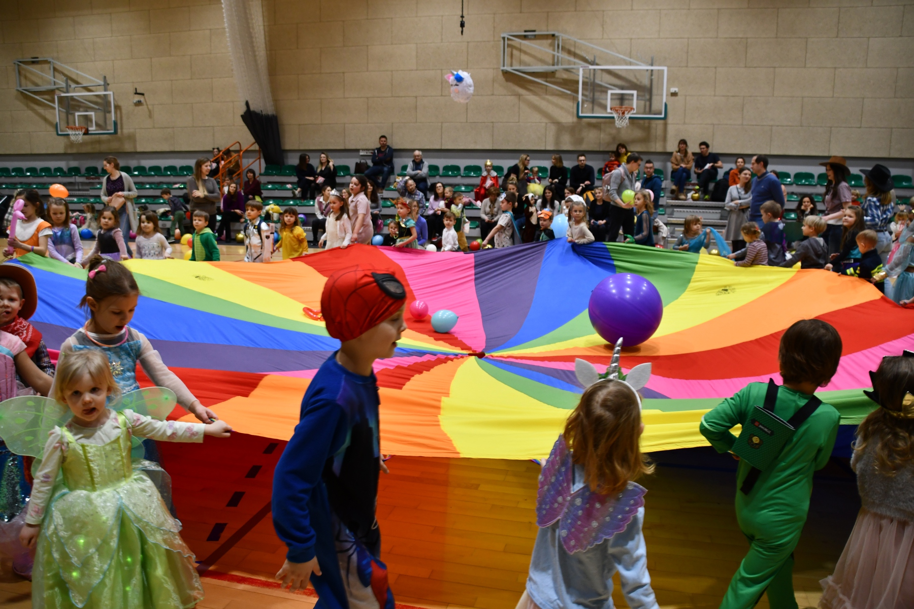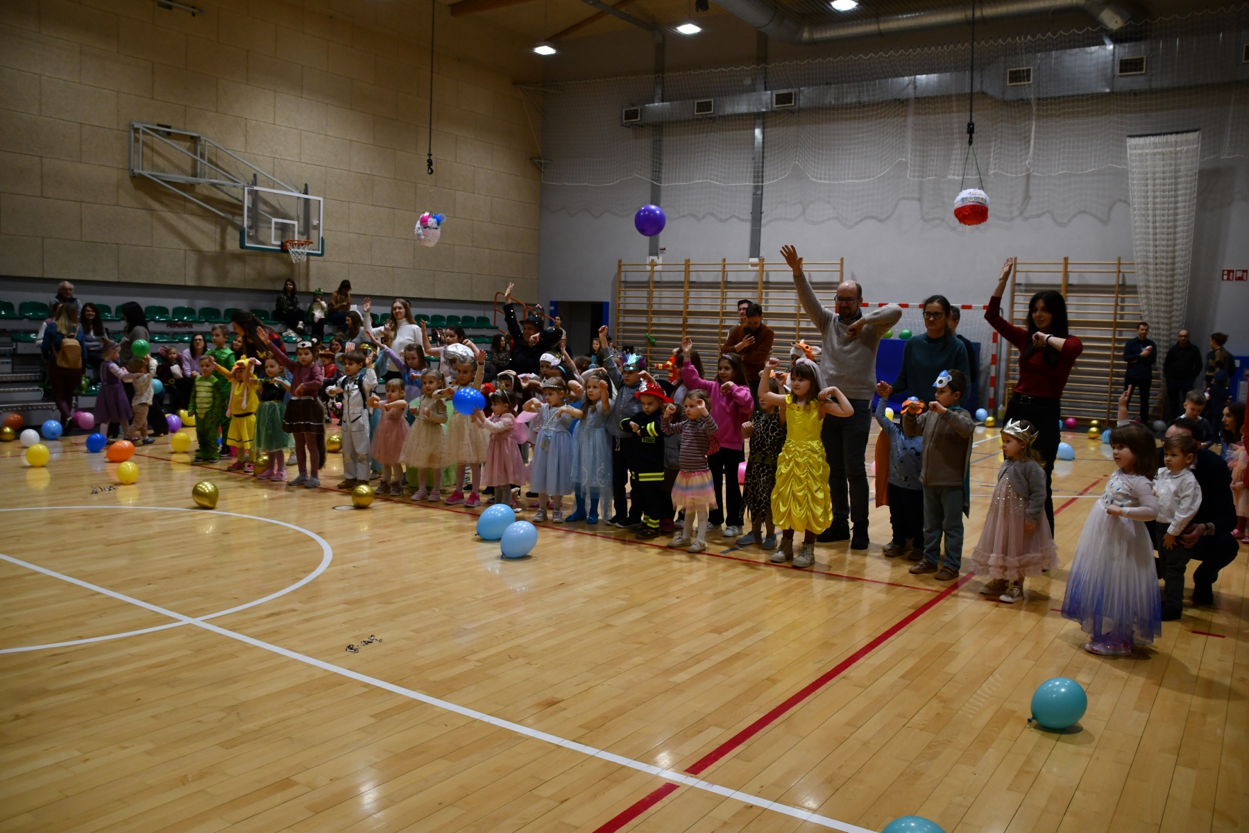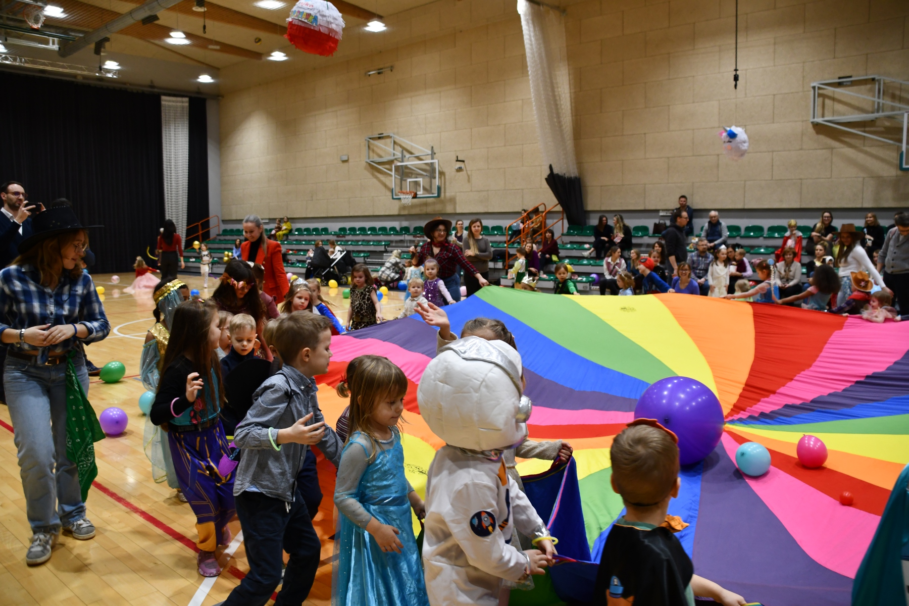 Sala wypełniła się bajkowymi postaciami – pojawiły się księżniczki, smoki, dinozaury, strażacy, policjanci, motylki, syrenki, kosmonauci i wiele innych fantastycznych przebrań