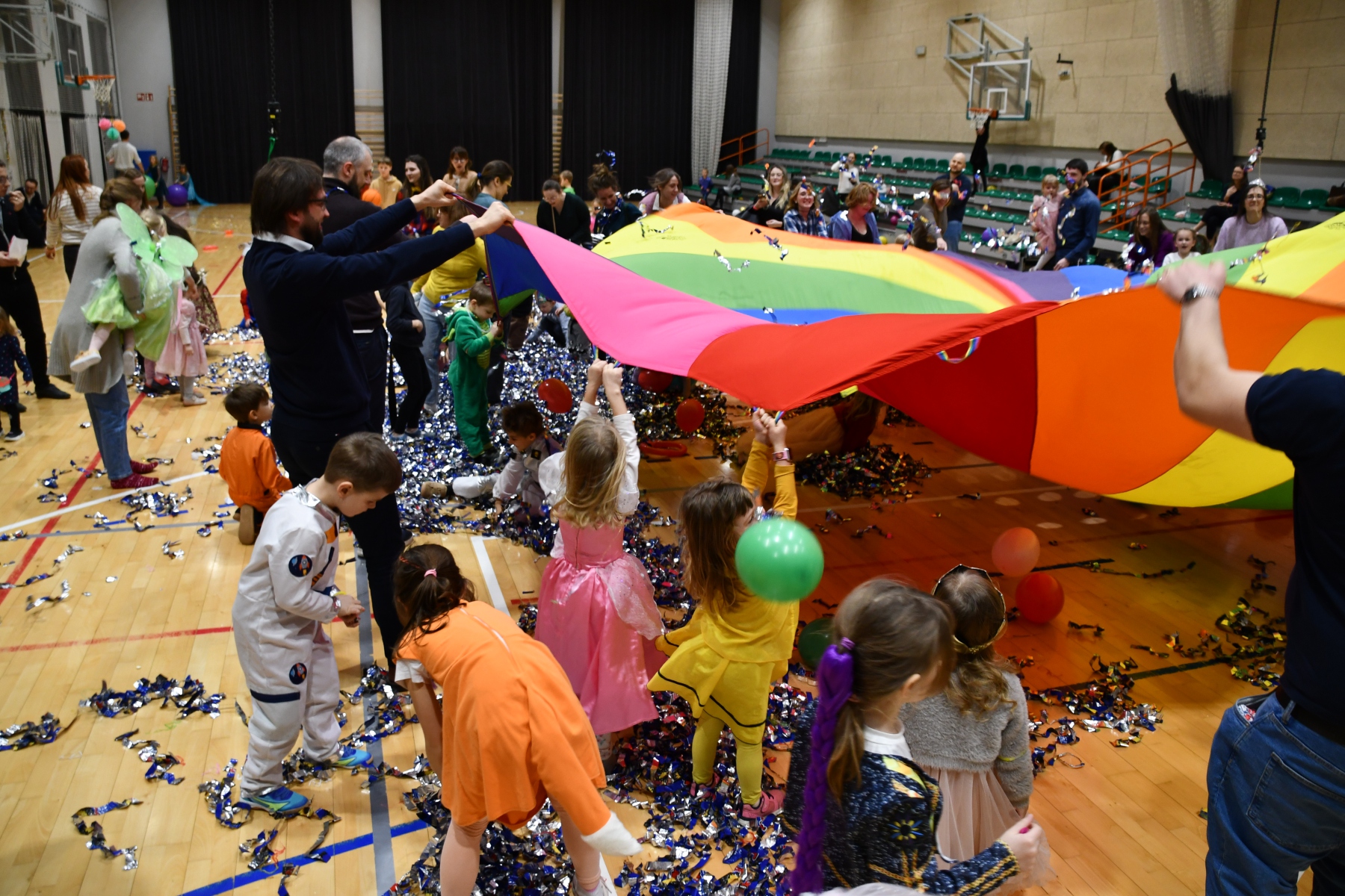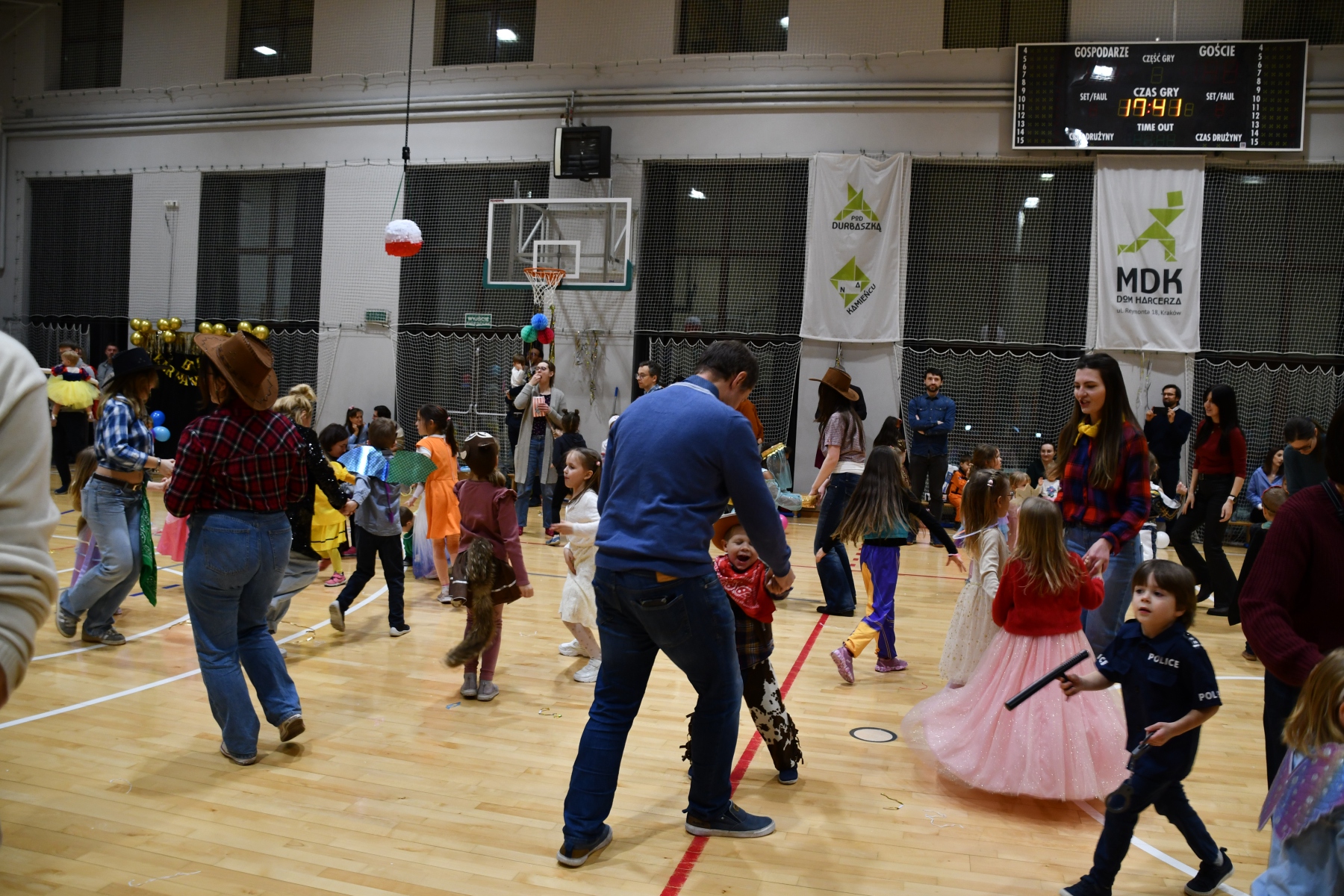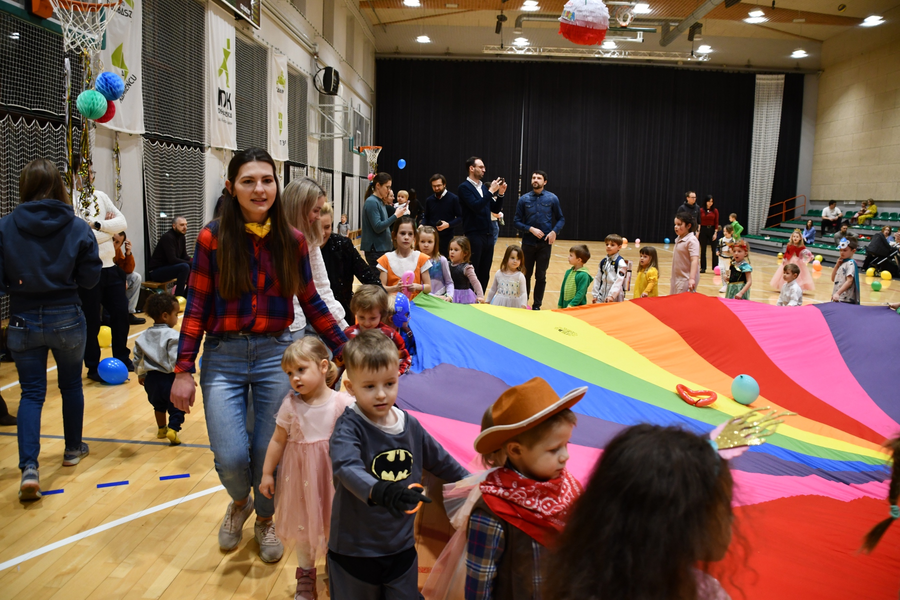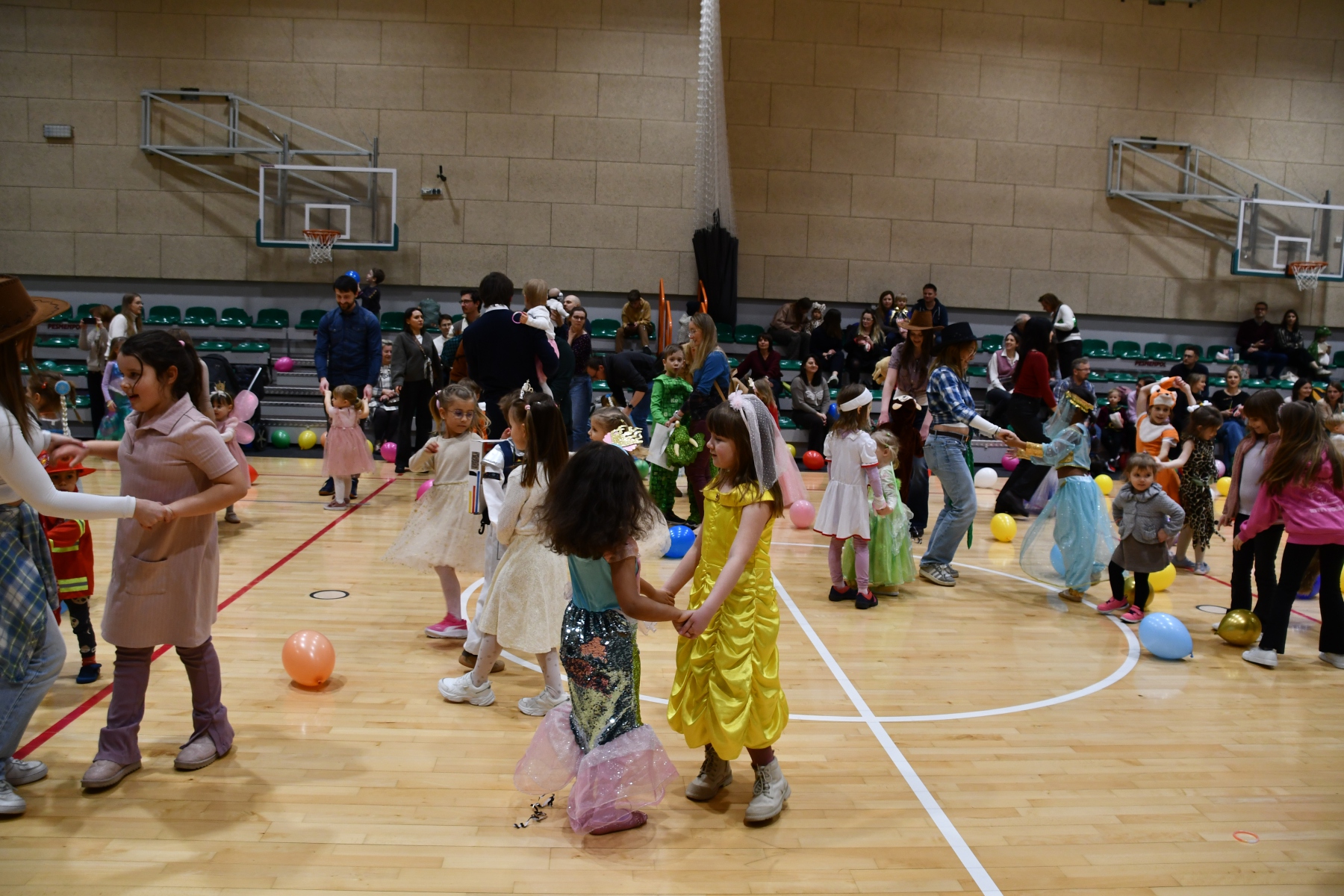 Sala wypełniła się bajkowymi postaciami – pojawiły się księżniczki, smoki, dinozaury, strażacy, policjanci, motylki, syrenki, kosmonauci i wiele innych fantastycznych przebrań