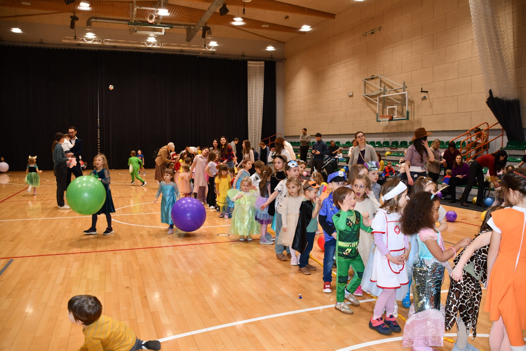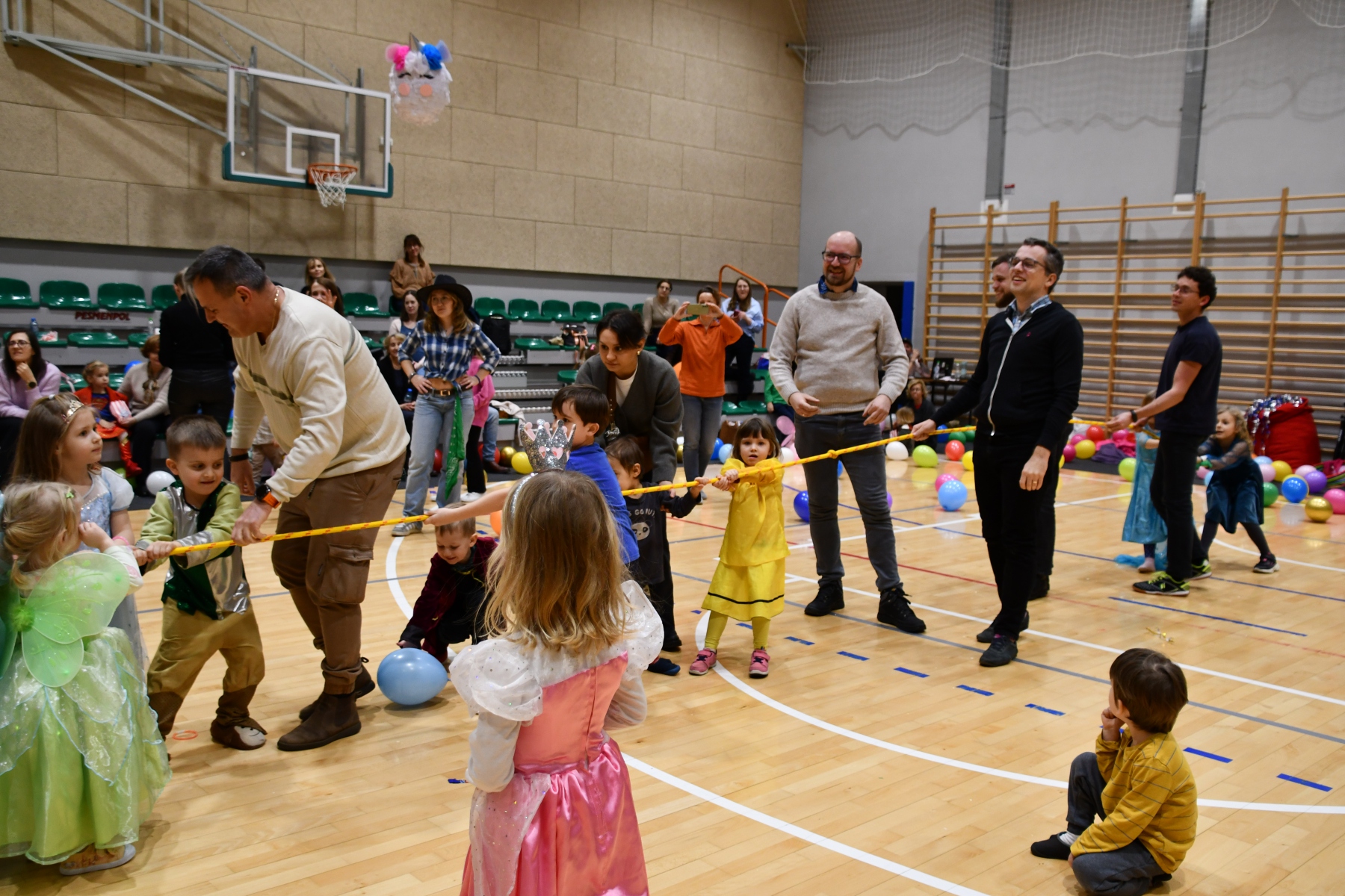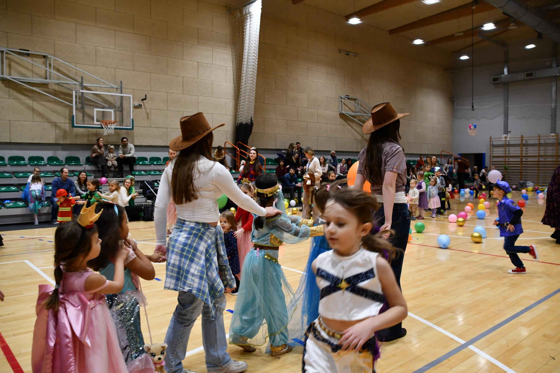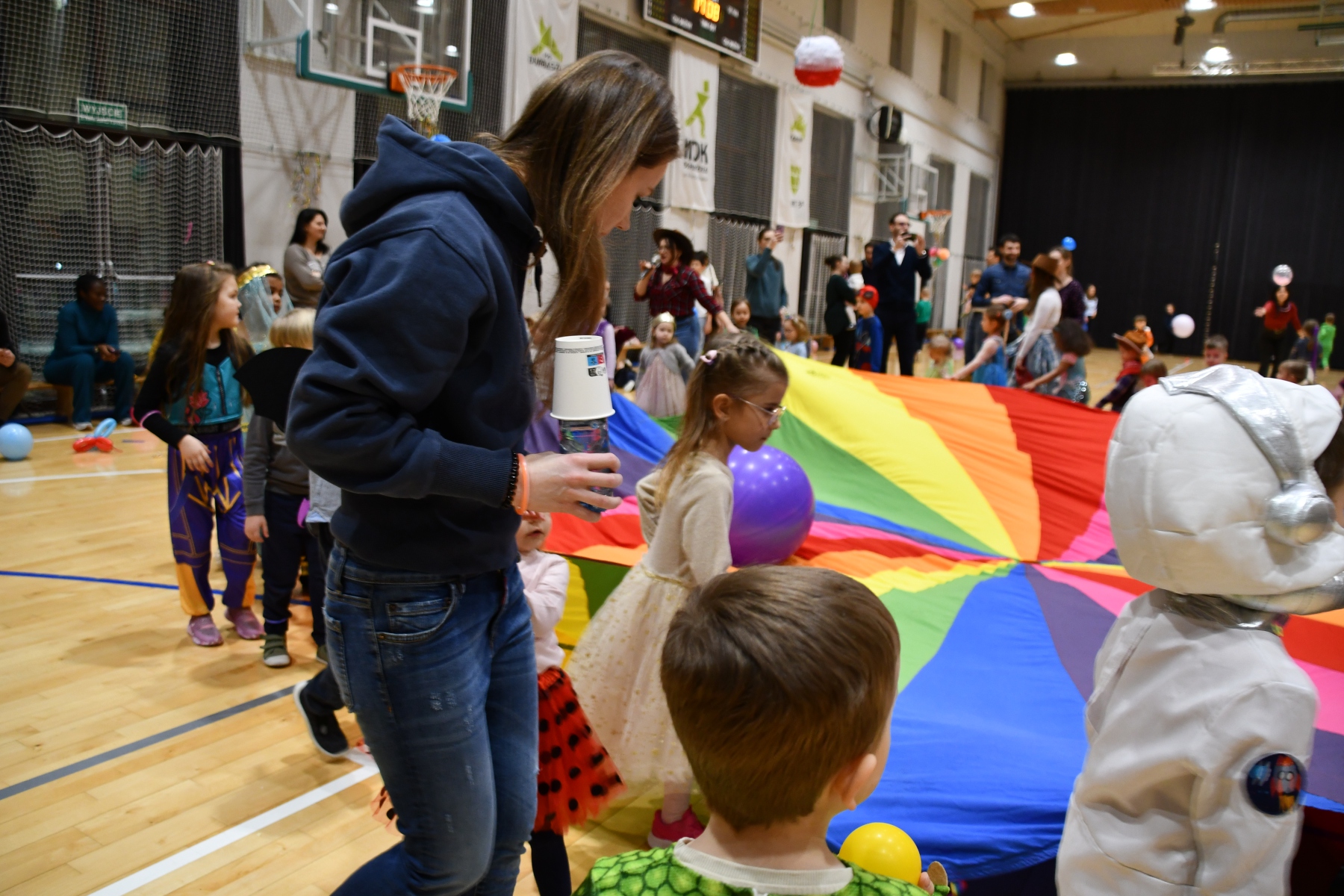 Sala wypełniła się bajkowymi postaciami – pojawiły się księżniczki, smoki, dinozaury, strażacy, policjanci, motylki, syrenki, kosmonauci i wiele innych fantastycznych przebrań