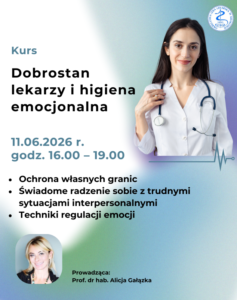 i emocjami innych. Lekarze częściej niż przedstawiciele innych zawodów doświadczają chronicznego stresu, przebodźcowania, zmęczenia empatycznego oraz ryzyka wypalenia. Jednocześnie kultura pracy w ochronie zdrowia rzadko dostarcza narzędzi pozwalających na regulację emocji, ochronę własnych granic czy świadome radzenie sobie z trudnymi sytuacjami interpersonalnymi.