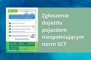 Szanowni Państwo, publikujemy grafikę obrazujacą w jaki sposób pacjent powinien zgłosić dojazd do placówki medycznej, w sytuacji gdy porusza się pojazdem niespełniającym norm SCT. plakat