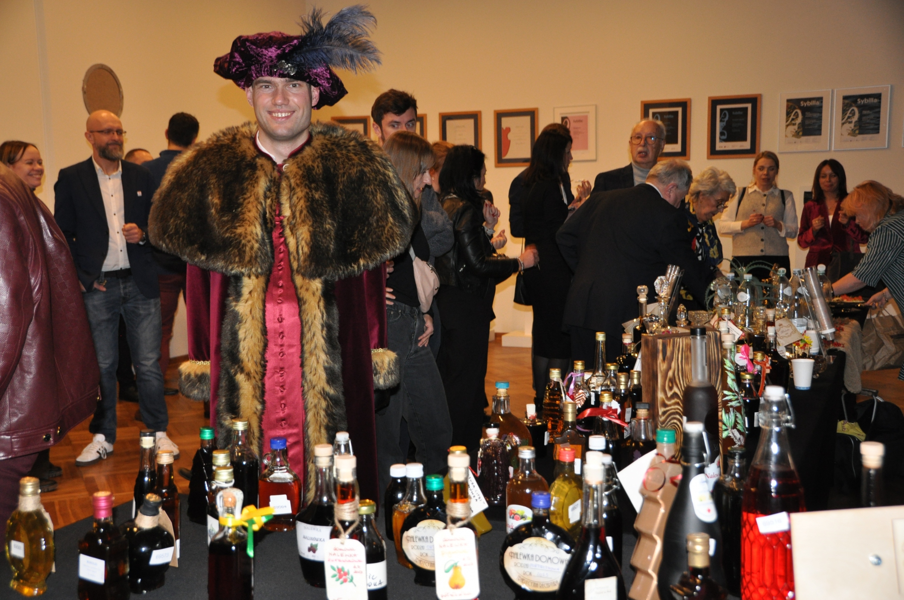Kameralna atmosfera, magiczne oświetlenie wzgórza i rekordowe 75 nalewek sprawiły, że wydarzenie przyciągnęło ponad 150 uczestników z całej Polski, w tym przedstawicieli licznych okręgowych izb aptekarskich, a także reprezentantów zawodów zaufania publicznego: adwokatów, fizjoterapeutów, ratowników medycznych, inżynierów budownictwa czy rzeczników patentowych. W historycznym stroju wieczór uświetnił również Mateusz Danielczyk – kustosz Apteki Muzeum „Pod Orłem”.