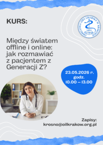 Kurs jest bezpłatny i organizowany dla Członków Okręgowej Izby Lekarskiej w Krakowie