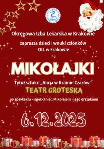 Okręgowa Izba Lekarska w Krakowie serdecznie zaprasza wszystkie dzieci i wnuki lekarzy oraz lekarzy dentystów, członków OIL w Krakowie na wyjątkowe, magiczne spotkanie z okazji Mikołajek!