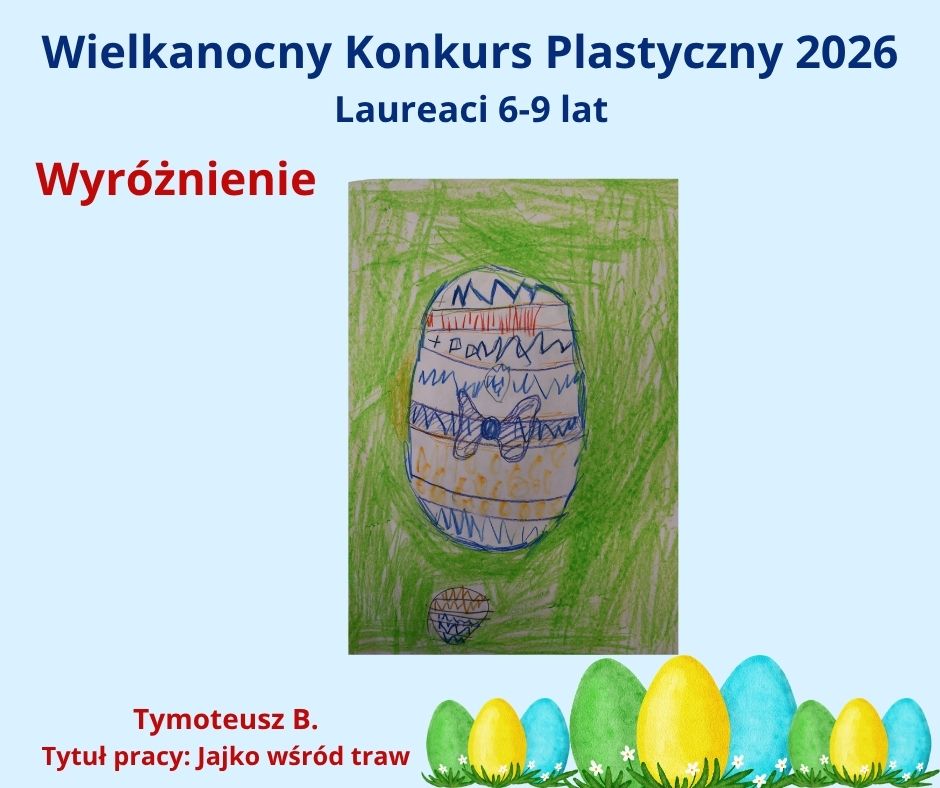 Wyróżnienie: Tymoteusz B., praca: Jajko wśród traw