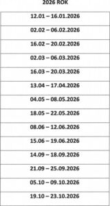 W związku z obowiązkiem zorganizowania stażu cząstkowego w zakresie transfuzjologii klinicznej w ramach stażu z chorób wewnętrznych dla lekarzy stażystów Regionalne Centrum Krwiodawstwa i Krwiolecznictwa w Krakowie w załączeniu przesyła harmonogram na 2026 rok.