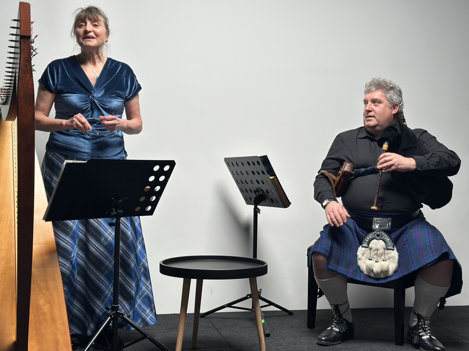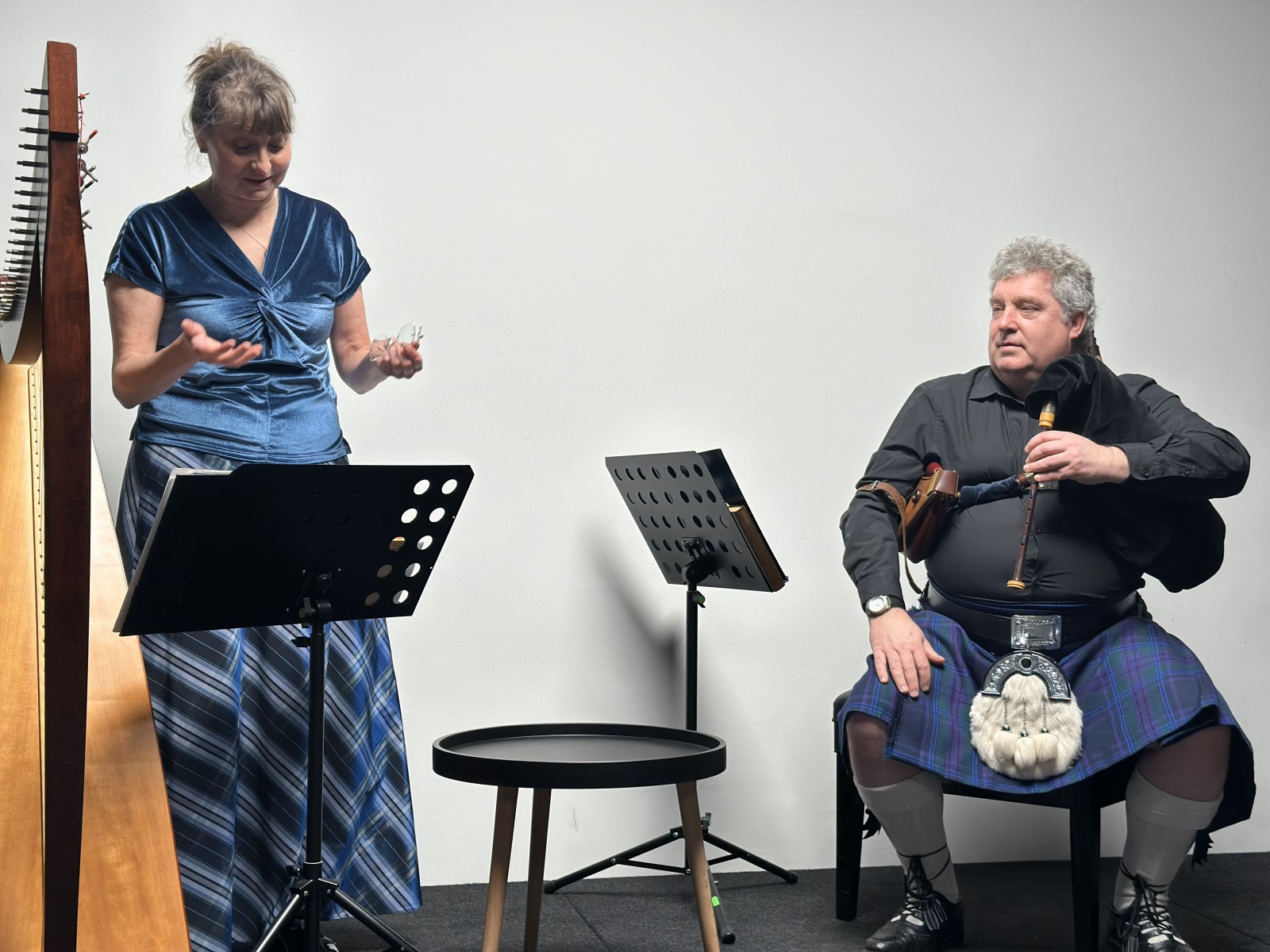 Za nami wyjątkowe spotkanie z kulturą i tradycją Szkocji. Wieczór wypełniła piękna, nastrojowa muzyka w wykonaniu Lindsay Davidson oraz Ireny Czubek-Davidson, których interpretacje na harfie i dudach przeniosły publiczność w świat szkockich melodii i opowieści.