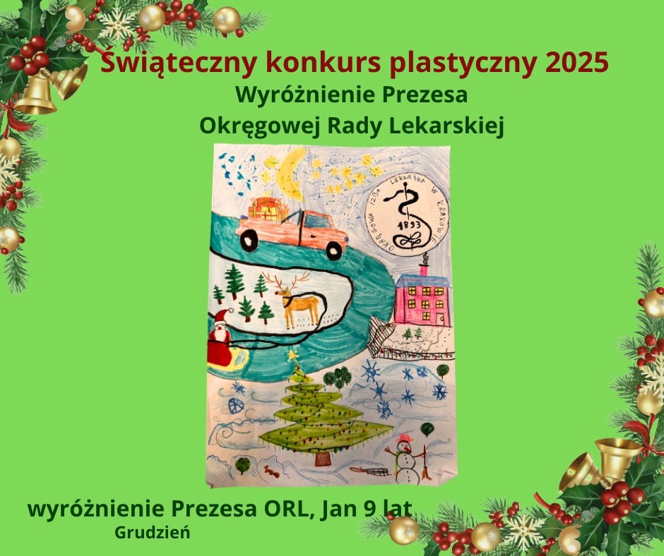 Z ogromną radością ogłaszamy wyniki Bożonarodzeniowego Konkursu Plastycznego dla dzieci i wnuków członków OIL w Krakowie. Zadaniem uczestników było wykonanie kartki świątecznej – takiej, której całość lub wybrany element zostanie wykorzystany jako oficjalna kartka z życzeniami wysyłanymi przez Prezesa Okręgowej Rady Lekarskiej w Krakowie.