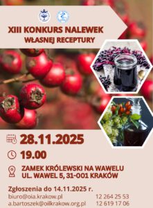 🍶 Dostarczenie nalewek: do siedziby OIA lub OIL w Krakowie — do 27 listopada 2025 r. do godz. 13:00 (po wcześniejszym uzgodnieniu możliwe także bezpośrednio przed konkursem na Wawelu).