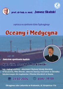 Spotkanie będzie okazją do wymiany myśli, poszerzenia perspektywy oraz rozmowy z wybitnym praktykiem, łączącym wieloletnie doświadczenie morskie z tematyką medyczną.